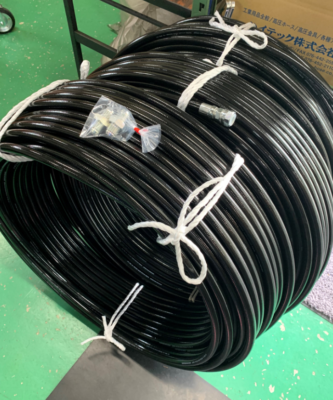 そこで、ゴムホースよりも軽量で硬さも持ち合わせた樹脂ホースをご依頼頂きました。