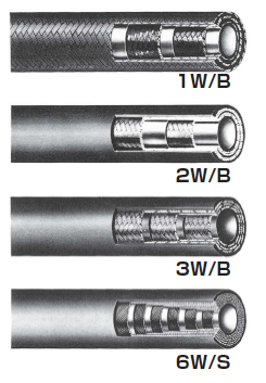 一般の油圧回路に使用するホースや配管のサイズは、内径50ミリまでで充分ですが、特殊な用途、例えば海洋開発、船舶用、製鉄や航空機関係の一部などでは、100ミリ程度のホースを使用することがあります。この需要にお応えするために、大口径ホースを用意しています。本製品は衝撃圧がかからない圧力波形でご使用ください。